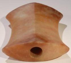 | A length-wise view of this hourglass form bannerstone; image credit on full record. |