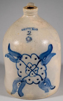 A cobalt blue-decorated two-gallon salt-glazed stoneware jug, Cortland, New York, mid 19th century, stamped "CORTLAND / 2".