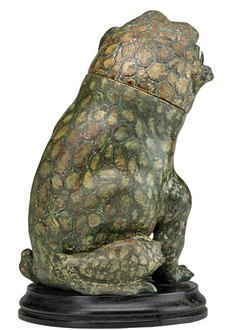 | | Back view of Martin Brothers pottery rare and large glazed stoneware frog figure tobacco jar; image credit on full record. |