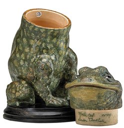 | | A Martin Brothers pottery rare and large glazed stoneware frog figure tobacco jar, England, 1895; image credit on full record. |