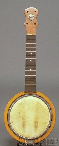 Modern banjo-ukulele by Alvin Keech, circa 1920, the peghead with Keech badge stamped BANJULELE BANJO, PAT 219720, the serial number B10044 sta... [more detail available via subscription]