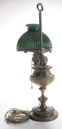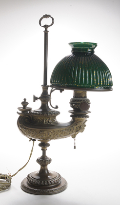 | | Another view of the Tiffany bronze genie student lamp; image credit on full record. |