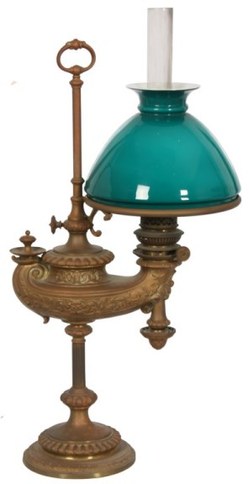 | Another view of the Wild and Wessel Aladdin style brass student lamp; image credit on full record. |