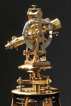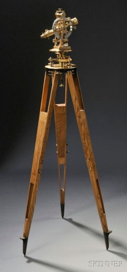 | | The Otto Fennel brass surveyor's transit on an oak tripod; image credit on full record. |