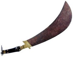 An Indian scimitar sword, 18th or 19th century, crescent shaped blade and plain wood handle. Note: Included in the memoirs of Percy Marshall... [more detail available via subscription]