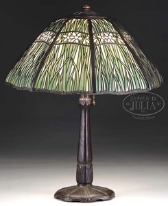 Handel metal overlay paperwhite table lamp with Art Nouveau base; image credit on full record.