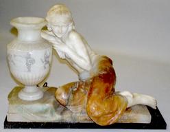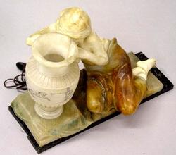 Table Lamp; Italian, Figure, Seated Girl by Urn, Alabaster & Marble, 21 inch.