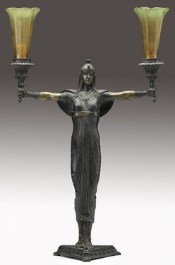 | | A 20th century, Deco bronze figure table lamp, signed Picault; image credit on full record. |