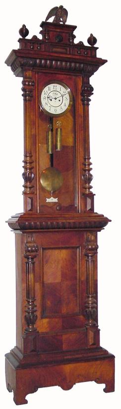 A circa 1897 German, Gustav Becker walnut tall case clock having an Alt Deutsch style. Note this clock is top heavy and there is a bracket that must b... [more detail available via subscription]