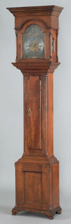 Tall Case Clock; Pennsylvania, Queen Anne, Hoff (George), Walnut, Flat Top, 30 Hour, 93 inch.