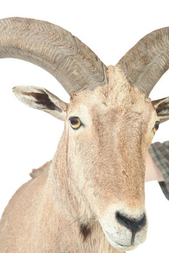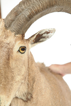 | Facial detail of the Aoudad Sheep taxidermy mount; image credit on full record. |