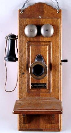 An oak double bell Chicago Telephone Supply Company wall telephone ; image credit on full record.