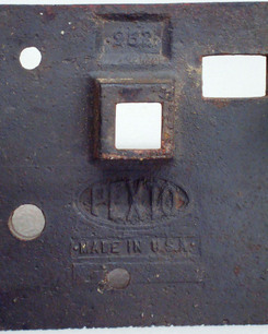 | Peck Stow & Wilcox tinsmith's cast iron bench plate marked Pexto; image credit on full record. |