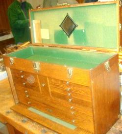 A Model 052 eleven drawer oak machinist tool chest by the Dayton, Ohio, firm of H. Gerstner & Sons. Felt lined drawers with original mirror back and m... [more detail available via subscription]