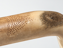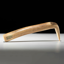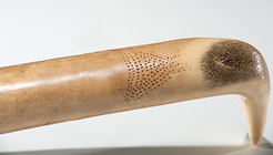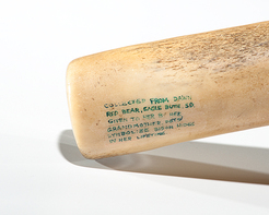 A Sioux Elk Antler Hide Scraper Belonging to Dawn Red Bear with inked inscription. Dots symbolize bison hides in her lifetime; upper portion decorated... [more detail available via subscription]