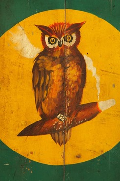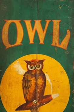 | The central owl on the Abe Abram signed Owl Cigars advertising sign; image credit on full record. |