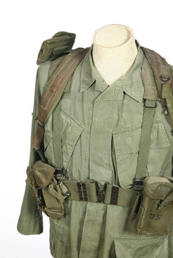 | | A Vietnam War U.S. Army field uniform including jacket and shirt pack and accessories; image credit on full record. |