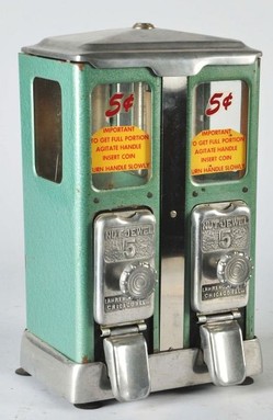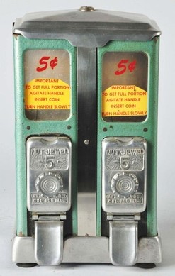 | A Nut Jewel 5 cents twin column peanut vendor by Lawrence Mfg., Chicago; image credit on full record. |