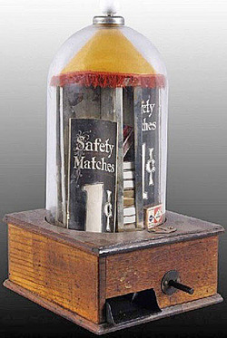 A glass dome Safety Matches coin-operated vending machine;