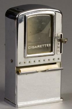 A coin-operated model of a National cigarette vending machine; image credit on full record.