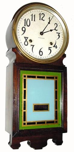 A circa 1918 E. Ingraham & Co., 'Navarre' wall clock having an 8-day time and strike, mahogany finish case and paper dial.