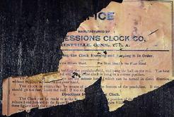 A Sessions 9 inch drop octagon wall clock with original paper dial attached to pan. Has a Sessions pressed brass pendulum with a poplar case in origin... [more detail available via subscription]