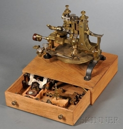 A Swiss brass, iron and steel [watchmaker or jeweler's gear or] wheel cutting engine, Switzerland, 20th century, three iron feet and brass frame, 7.5"... [more detail available via subscription]