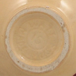 Underside of Watt pottery, Apple decorated pitcher;