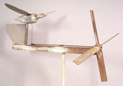 A carved and painted Flying Duck whirligig with propeller driven sheet zinc wings; image credit on full record.
