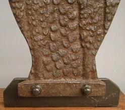 | A detailed view of the mounting bracket on this cast iron perched eagle windmill weight; image credit on full record. |