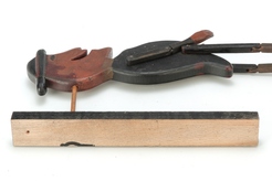 An American dancing man toy, early 20th century. Cut out wooden silhouette of a man with hat and coat tails. Original paint. Mounted on a wood board. ... [more detail available via subscription]