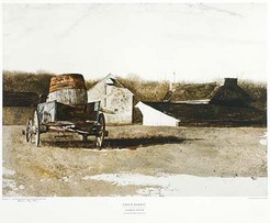 | | A signed collotype of Andrew Wyeth's painting Cider Barrel; image credit on full record. |