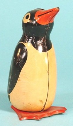 A figural tin Penguin coin bank made by the Animate Toy Company.