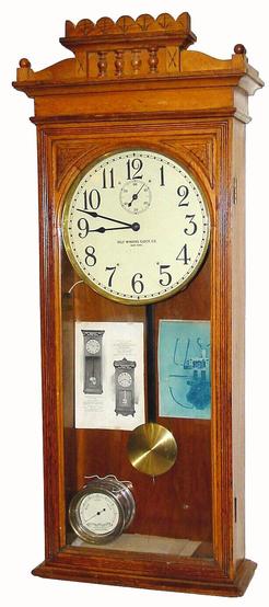 A circa 1887, Self Winding Clock Co., New York, battery wound wall "Regulator No. 6" in ash. This clock is otherwise like new. Other self winding lite... [more detail available via subscription]