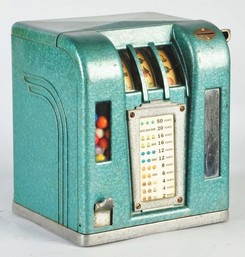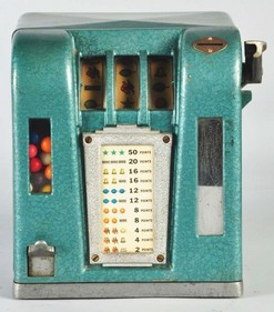 | A Zephyr 3 reel slot machine type trade stimulator with gumball vendor; image credit on full record. |