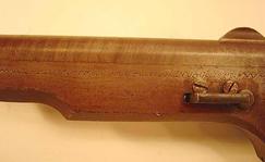 | | Detail of walnut stock on Colt Paterson Model 1839 Revolving Shotgun; image courtesy of Greg Martin Auctions.; |