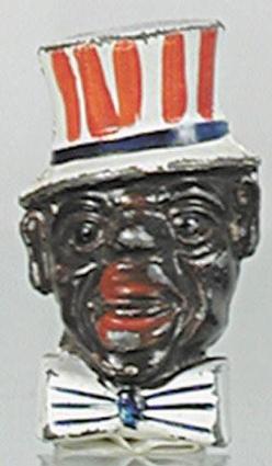 An Uncle Sam pencil sharpener. Darkie with top hat.Cast iron. Marked inside back of top hat "Made in OCCUPIED JAPAN." All original paint. Circa 1948.