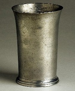 Robert Bonynge (or Bonning) tall pewter beaker with maker's mark; image credit on full record.