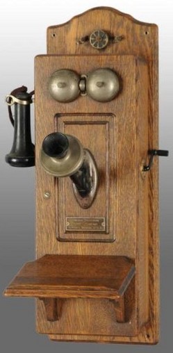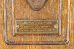Oak wall telephone made by the Chicago Telephone Supply Company of Elkhart, Indiana.
