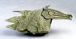 A cement sculpture of a stylized horse head after an original work by George Braque (French, 1882 to 1963) in the 1940s. Unmarked.